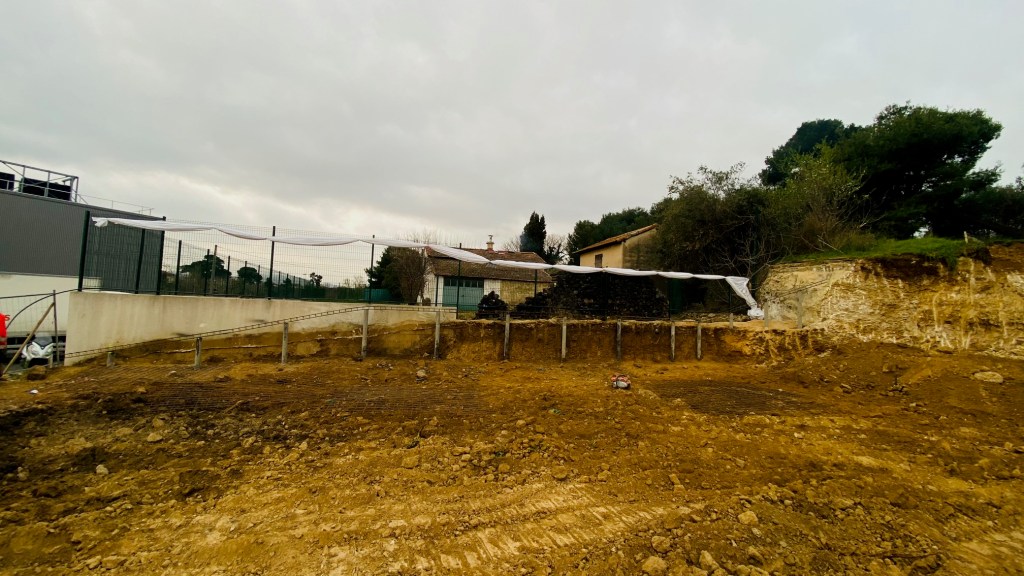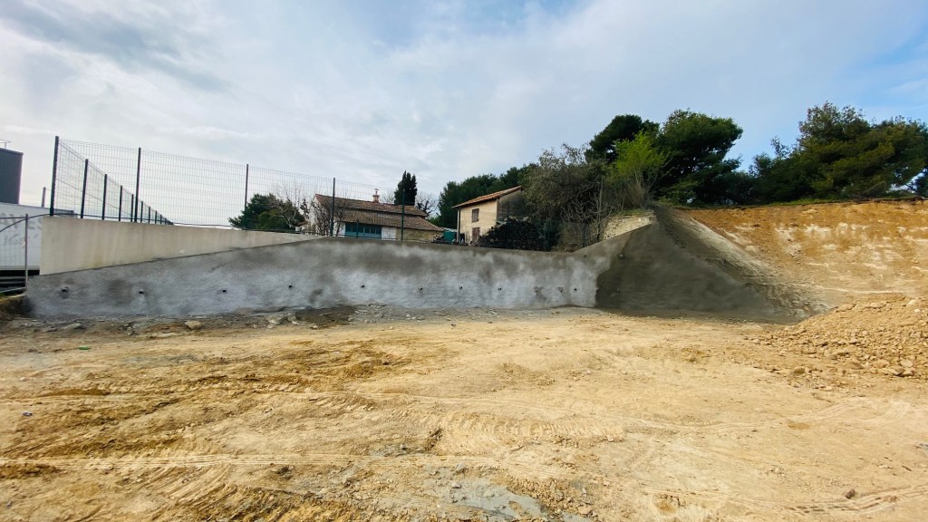 Lors du terrassement de parking avec une grande hauteur couplé à des tirants passif et du béton projeté pour soutenir les terres
