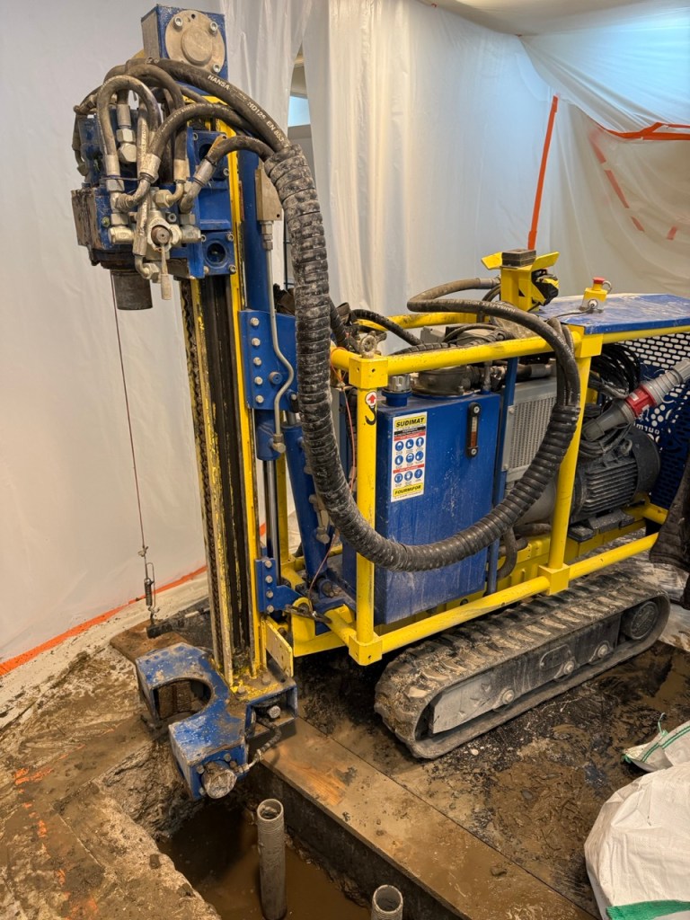 Réalisation de 8 micropieux diamètres 150mm pour un total de 80 mètres linéaire dans un bar/tabac et un garage sur la commune du Lavendou dans le Var (83) pour la création de fondations pour les massifs d’appuis de la construction d’une maison individuelle au dessus des commerces.