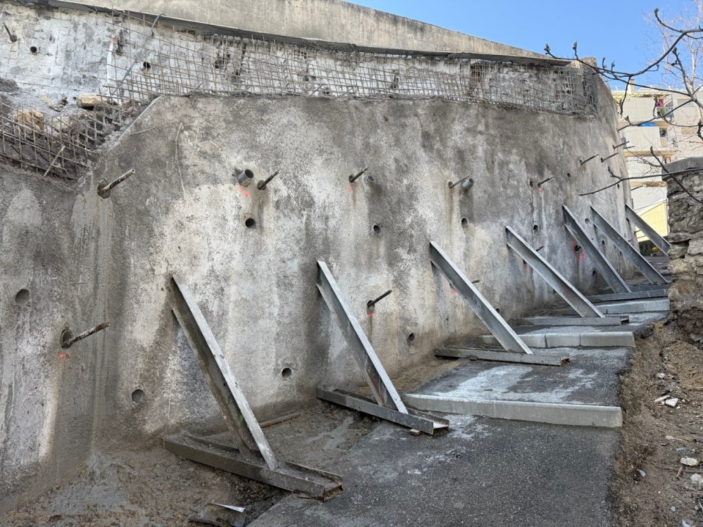 Réalisation d’ancrage passif en Roto-Percussion (R32 diamètre 90) pour pose de croix de saint André sur du béton projeté à Marseille quartier saint louis dans les Bouche Du Rhône (13).