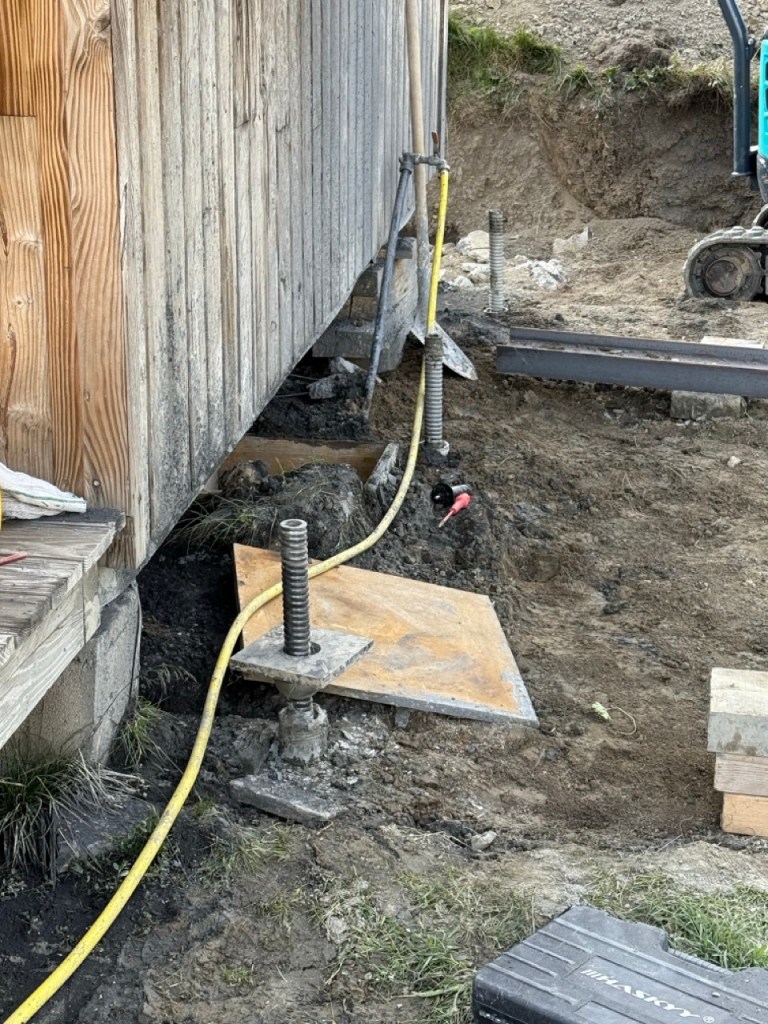 Réalisation de 6 micropieux pour un total de 36 mètres linéaires en Roto-Percussion (R51 diamètres 115) et pose d’IPN de 180 dans le cadre de la reprise en sous oeuvre d’une cabane de berger d’altitude à Ventelon dans les Hautes Alpes (05).